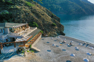 Adrasan koyu, sıra dışı doğal güzelliklerin içinde, konum ve içeriği ile bölgemizdeki “ekoturizm” uygulamalarında ilklerden biridir. Otelimiz eşsiz doğa ve tarihi atmosfer içinde sırtını yeşil yamaca yaslamış, tüm açık ve yarı açık mekânlarıyla plaj ve denizi kucaklamıştır. Bulunduğumuz çevre koşullarına gereken saygı ve titizliği göstererek şekillendirilen otelimiz; gereksinim ve olanaklarıyla, kullanıcıları düşünülerek tasarlanmıştır.